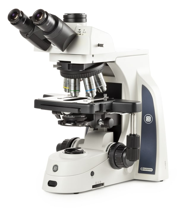 Euromex fluorescence microscopes are constructed with an incident light source, specific Plan or Plan Fluarex - optional semi-apochromatic - objectives, a set of excitation and emission filters and a dichroic mirror