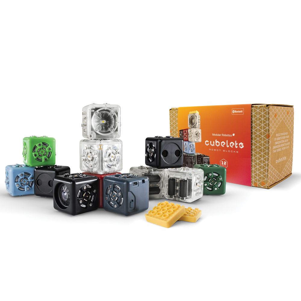 Age 4 and up. Journey into the world of robotics with fun, educational Cubelets®. This expandable system is the best way to introduce students to robotics and programming as they design and build potentially thousands of different functional robots using the 3 types of Cubelets®. Expand any set or pack by purchasing additional pieces. Free K-12 lesson plans are available.