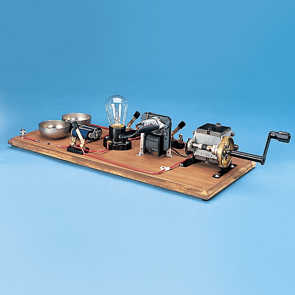 Each of the devices is controlled by an individual knife switch so that various components can be inserted or eliminated from the circuit. Instructions included.